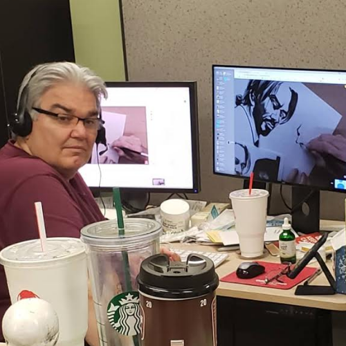And that’s John with his reference working on the art. You can click on the video link below to see and hear how everything went down. We had a blast with viewers texting in questions and even a couple of call-ins to the studio.