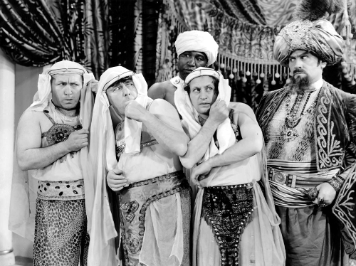 The Stooges gain entry into the fort by disguising as Santa Claus. They would repeat this gag in Malice in the Palace (1949) with Shemp replacing Curly. Since they are disguised as Santas, they were able to use some of the same footage!