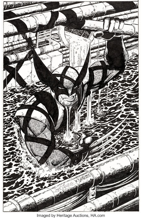 Here’s something you don’t see everyday. Wolverine in one of his most famous scenes penciled by John Byrne and inked by George Perez!
