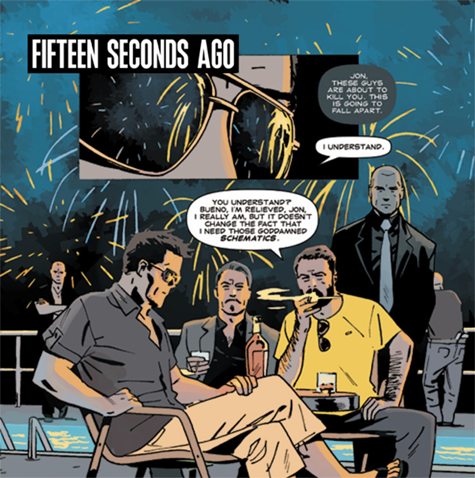 - “The story centers on Jon Moore, a highly sought-after espionage expert working in the European underground. Unknown to his clients — to anyone, for that matter — is the fact that he’s assisted by Jake Ellis, a seemingly all-knowing entity that nobody can see. Nobody, that is, except for Jon himself. The high-octane comic book series spans five issues and multiple European locations, providing fans with a reading experience that sits comfortably alongside the tensest thrillers the spy genre has to offer.”