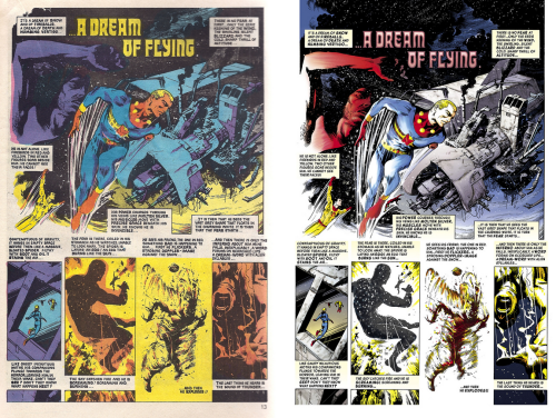 Saw this linked in a tweet and I must say, sorry what? Miracleman was originally published as a black and white only strip in Warrior before Eclipse picked it up and colorized the story. IMHO Marvel’s done a far better job of adding color to Leech’s and Davis’s artwork.