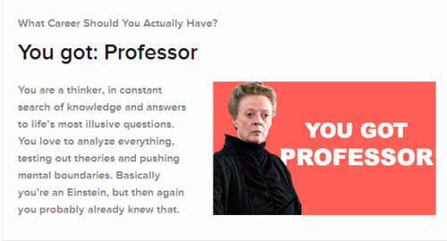 A professor is in the field of education and so am I. So it would seem that the career I should actually have, I actually have.